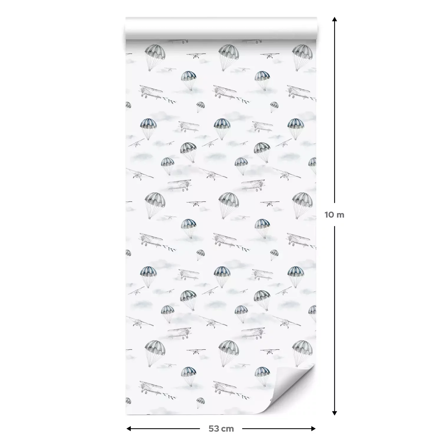Eine Standard-Tapetenrolle hat die Maße 0,53 m x 10 m und deckt eine Wandfläche von etwa 5 m² ab.