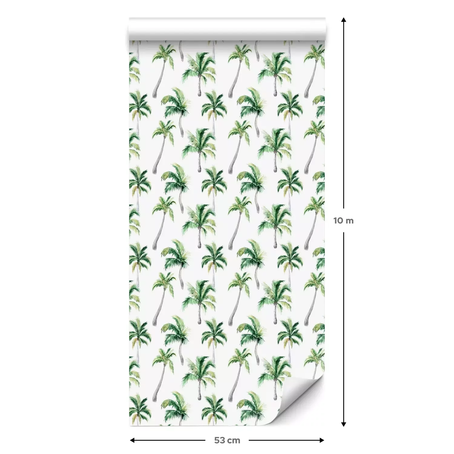Eine Standard-Tapetenrolle hat die Maße 0,53 m x 10 m und deckt eine Wandfläche von etwa 5 m² ab.
