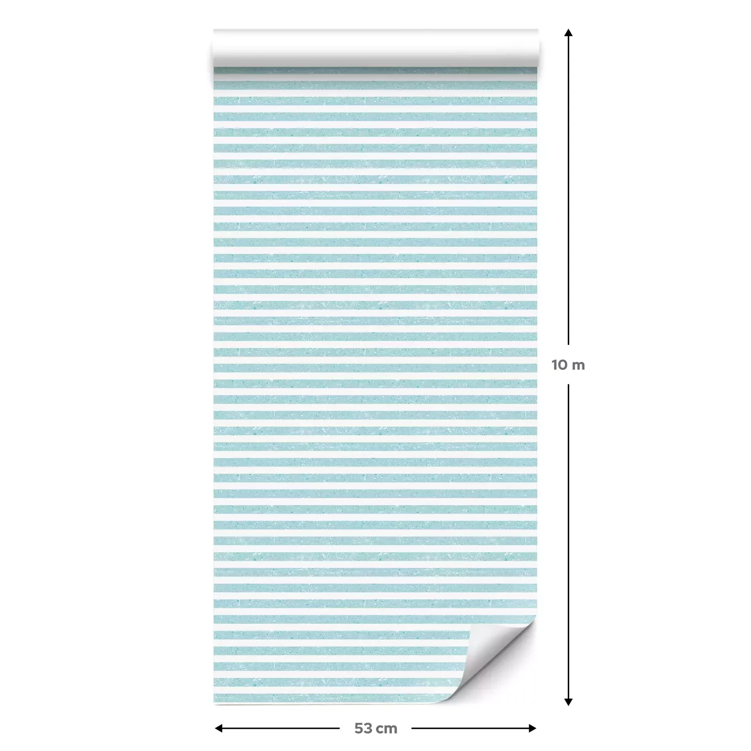 Eine Standard-Tapetenrolle hat die Maße 0,53 m x 10 m und deckt eine Wandfläche von etwa 5 m² ab.