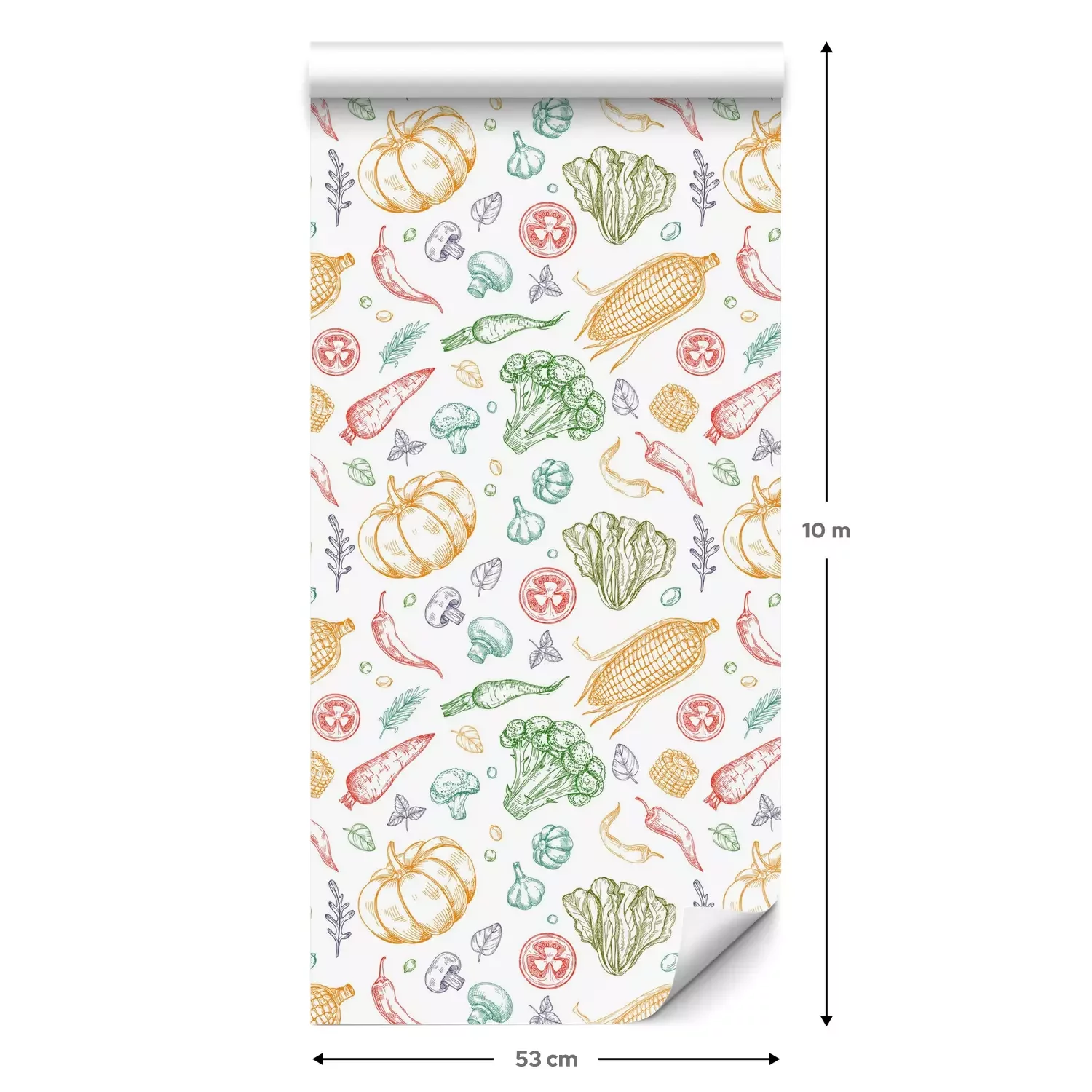 Eine Standard-Tapetenrolle hat die Maße 0,53 m x 10 m und deckt eine Wandfläche von etwa 5 m² ab.