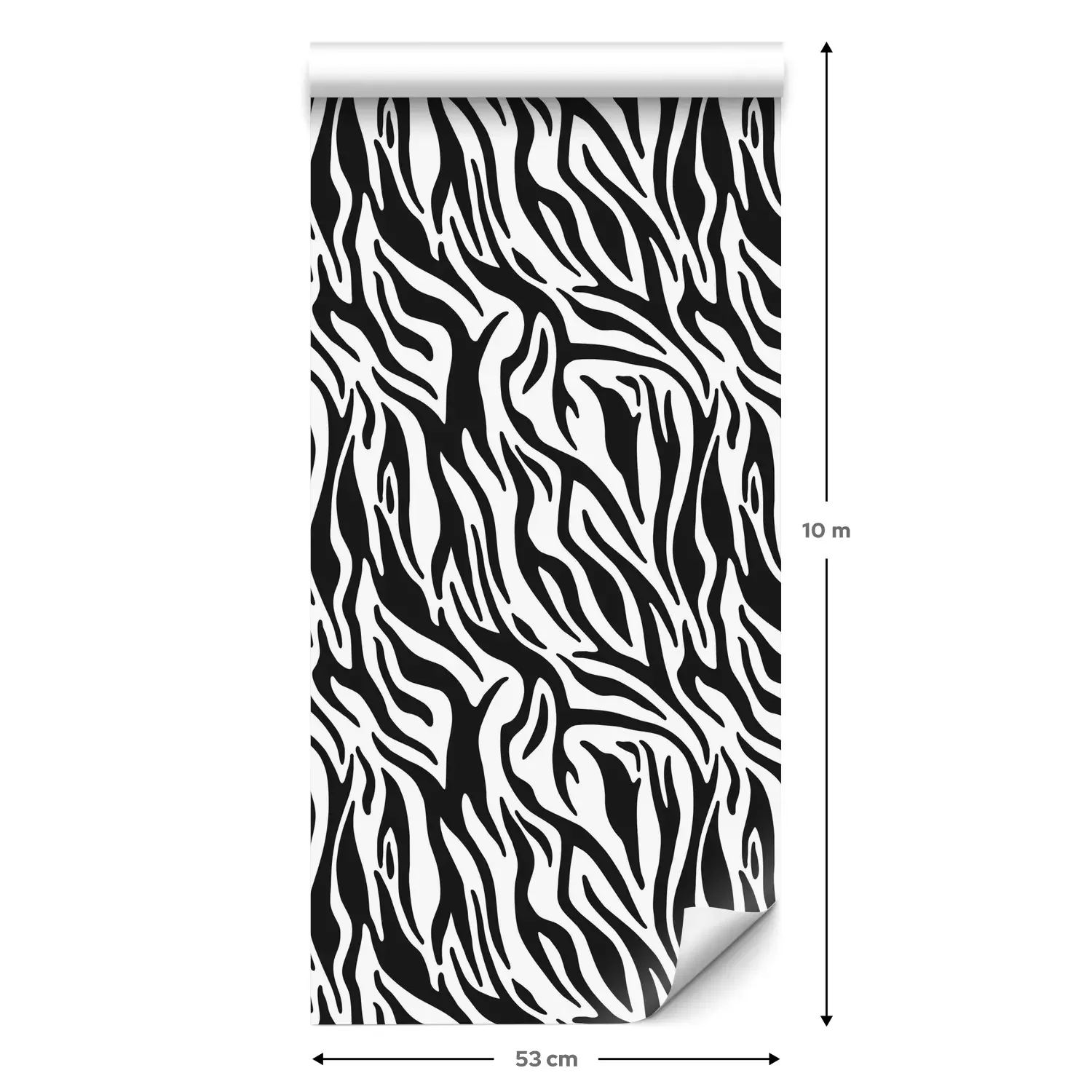 Eine Standard-Tapetenrolle hat die Maße 0,53 m x 10 m und deckt eine Wandfläche von etwa 5 m² ab.