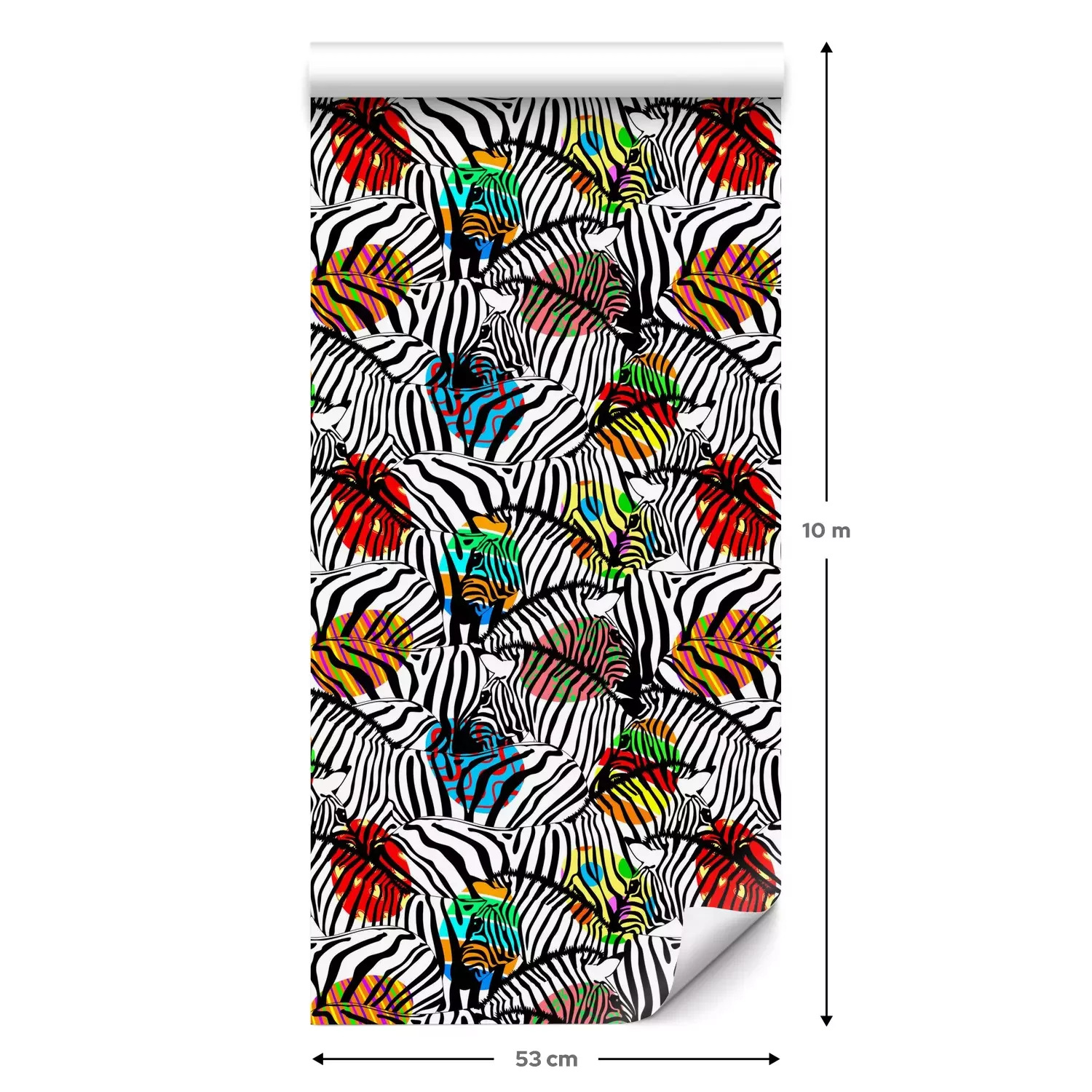 Eine Standard-Tapetenrolle hat die Maße 0,53 m x 10 m und deckt eine Wandfläche von etwa 5 m² ab.