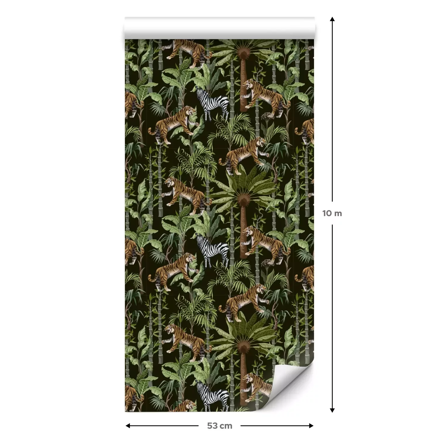 Eine Standard-Tapetenrolle hat die Maße 0,53 m x 10 m und deckt eine Wandfläche von etwa 5 m² ab.