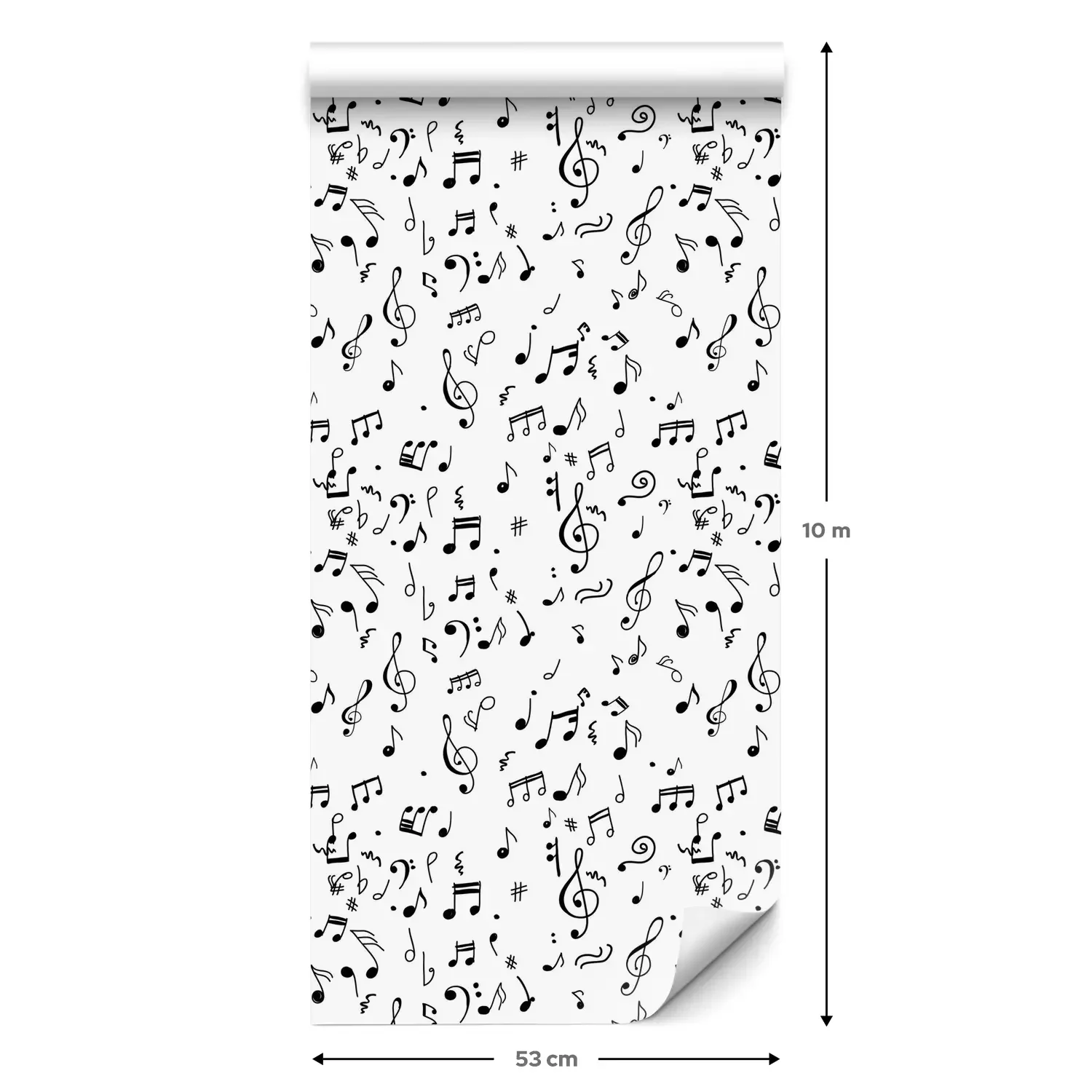 Eine Standard-Tapetenrolle hat die Maße 0,53 m x 10 m und deckt eine Wandfläche von etwa 5 m² ab.