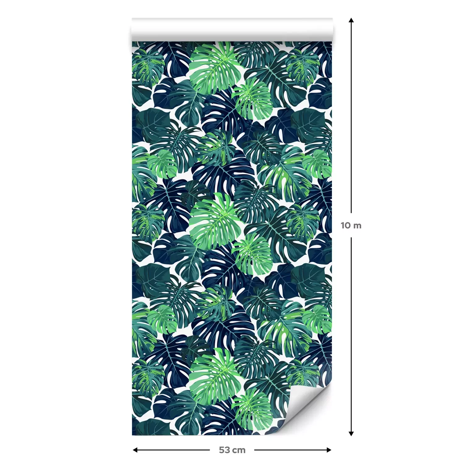 Eine Standard-Tapetenrolle hat die Maße 0,53 m x 10 m und deckt eine Wandfläche von etwa 5 m² ab.