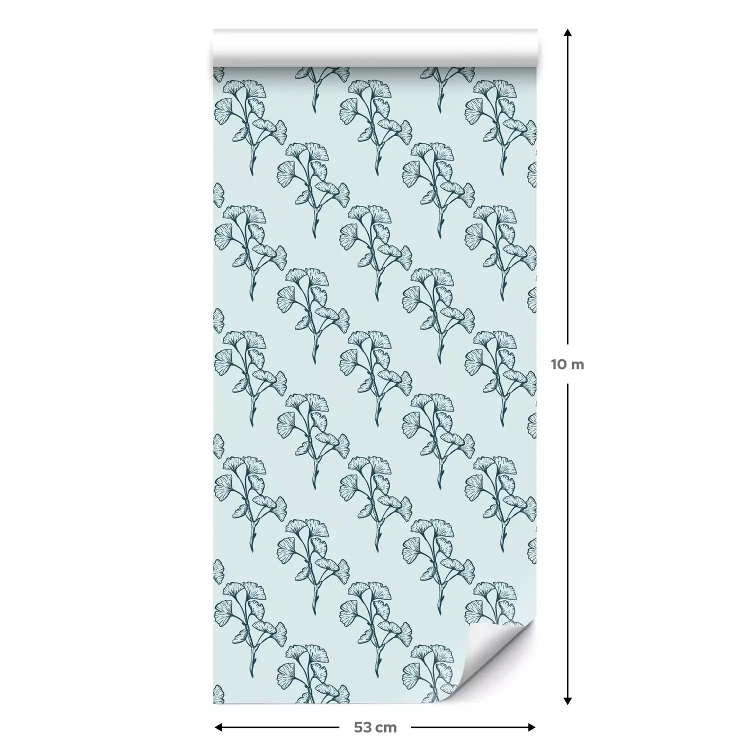 Eine Standard-Tapetenrolle hat die Maße 0,53 m x 10 m und deckt eine Wandfläche von etwa 5 m² ab.