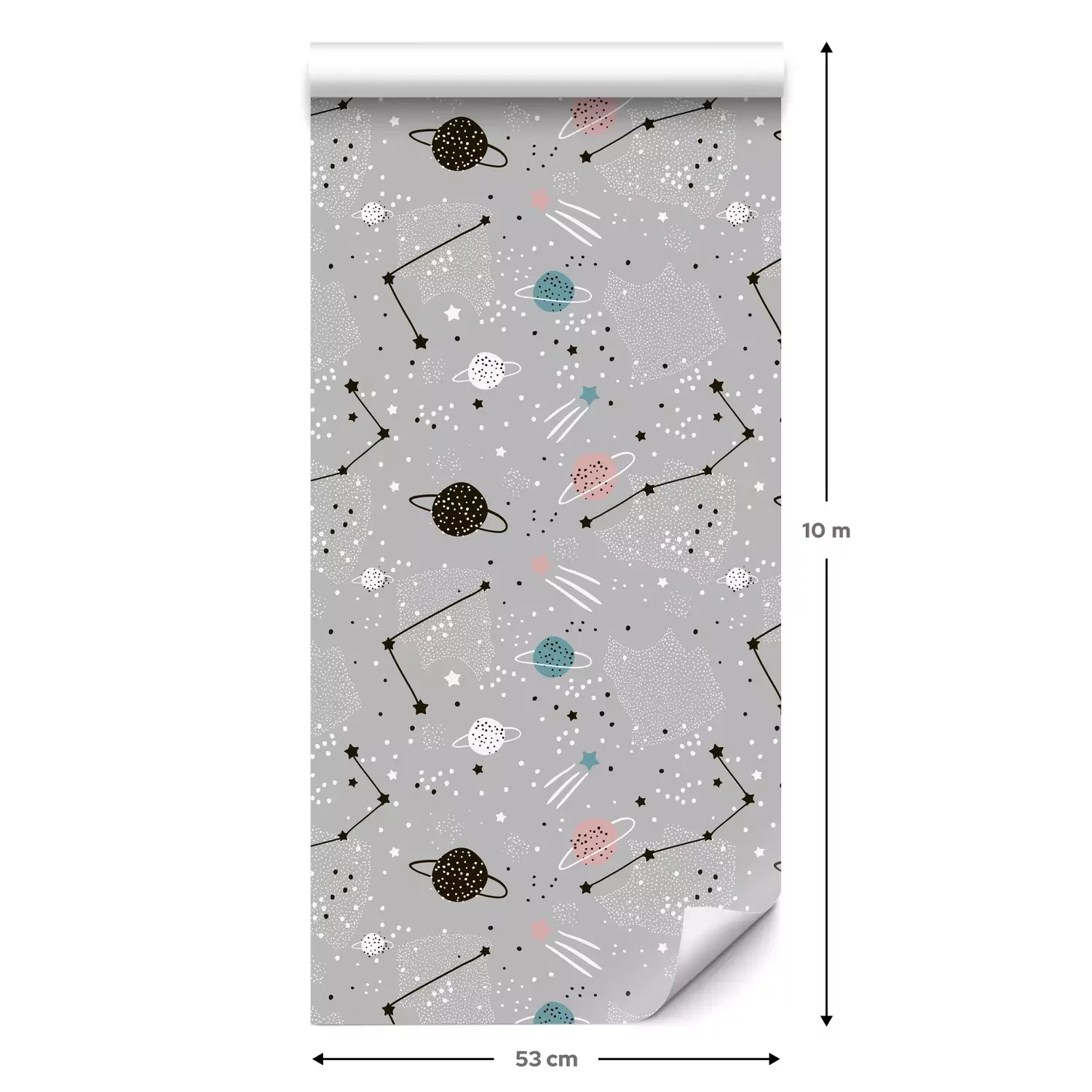Eine Standard-Tapetenrolle hat die Maße 0,53 m x 10 m und deckt eine Wandfläche von etwa 5 m² ab.
