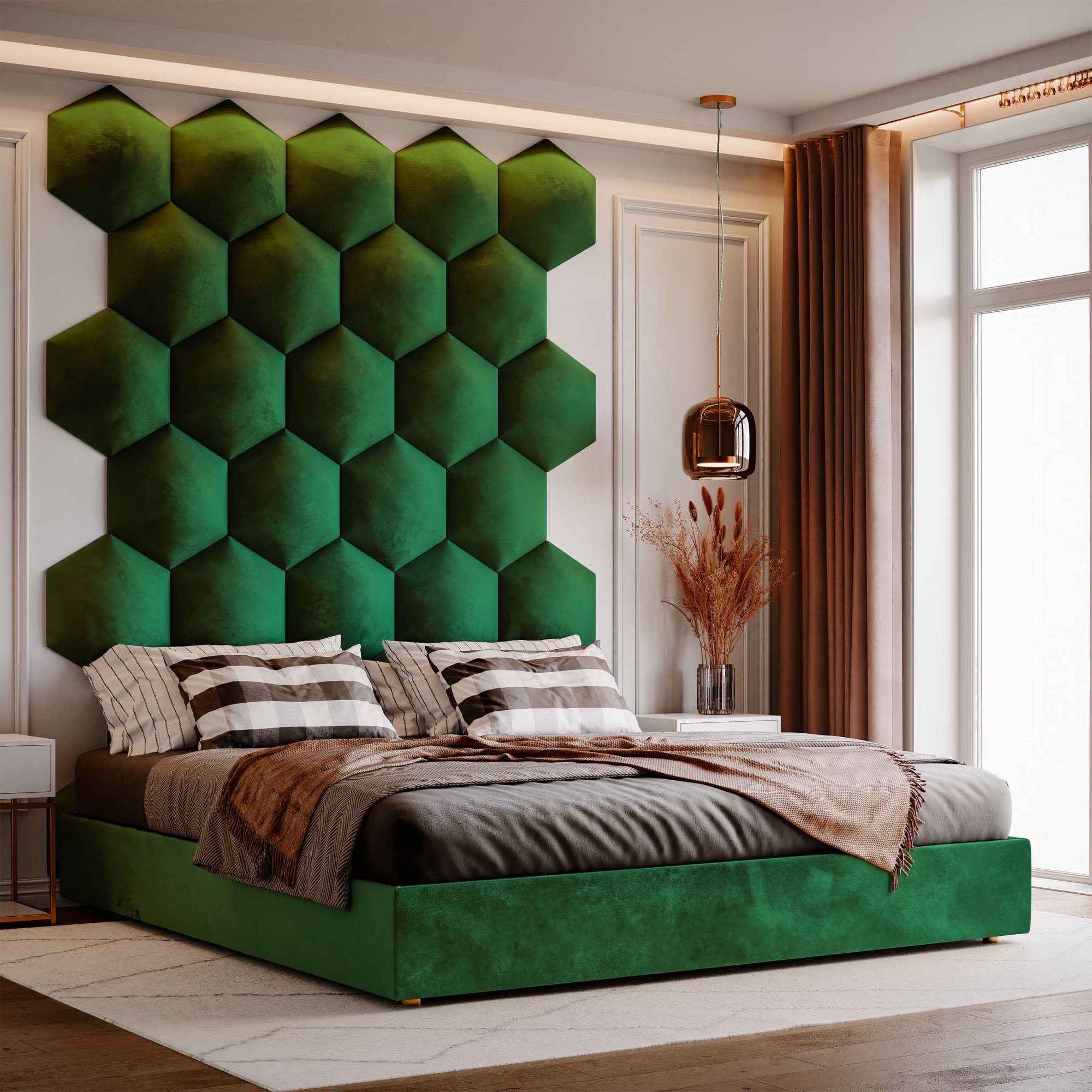 *Der Rabatt gilt nicht für Klebstoffe, Zubehör und Geschenkkarten.Unser Angebot umfasst Polsterpaneele in verschiedenen Formen, darunter quadratisch, rechteckig, sechseckig (hexagonal) und oval, die in vielen Größen und Farben erhältlich sind. Jedes Wandpolster besteht aus drei Schichten: einer robusten Spanplatte, einem hypoallergenen Polsterschaumstoff und einem Velours-Polsterstoff. Der Stoff ist fusselarm, abriebfest und nimmt keine Flüssigkeiten auf. All dies macht ihn pflegeleicht. Polsterpaneele lassen sich mit selbstklebenden Klettbändern ganz einfach befestigen. So gestalten Sie im Handumdrehen ein auffälliges Kopfteil im Schlafzimmer, eine gemütliche Spielecke im Kinderzimmer oder eine stilvolle Polsterwand im Wohnzimmer.