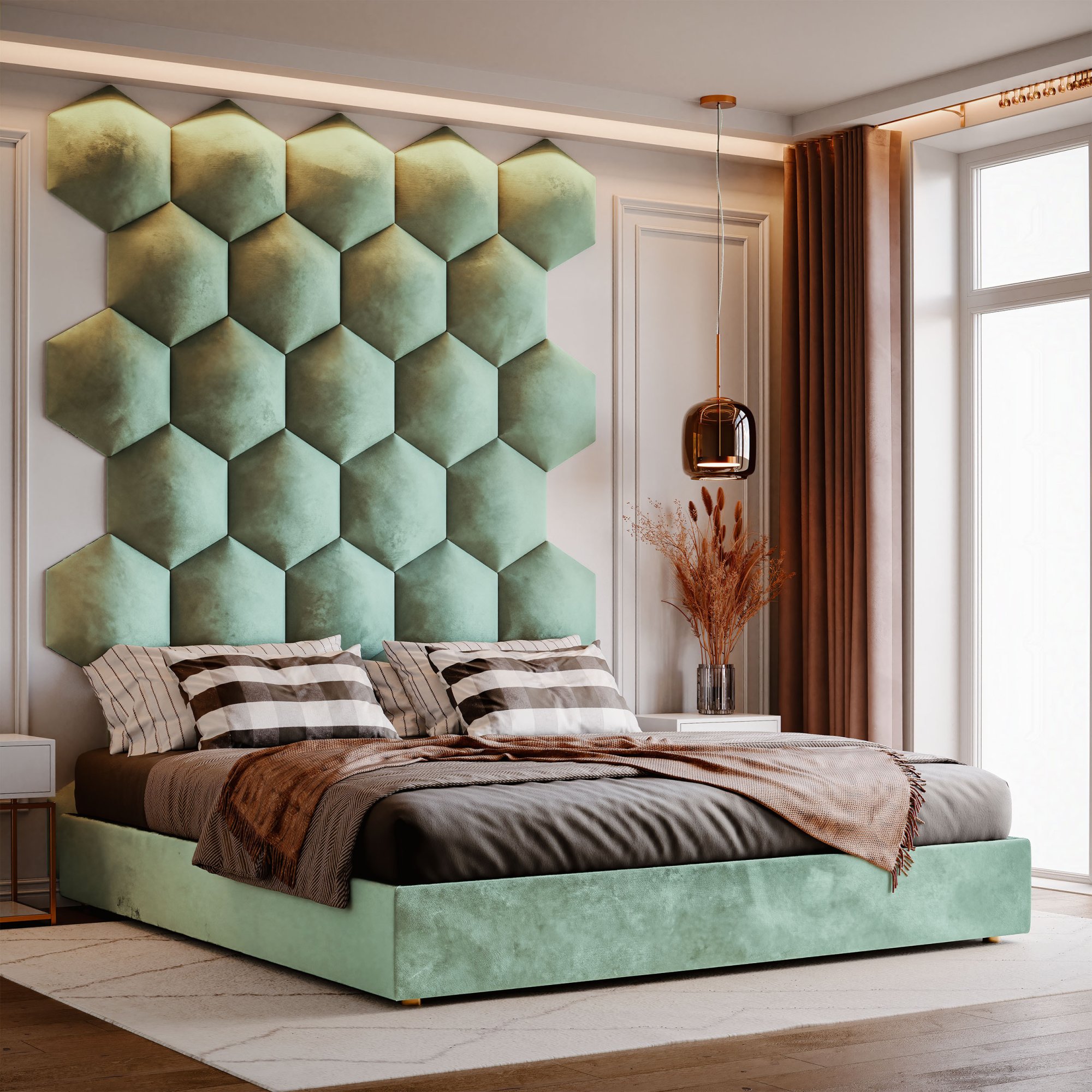 Wandpolster 20 mintgrünes Hexagon