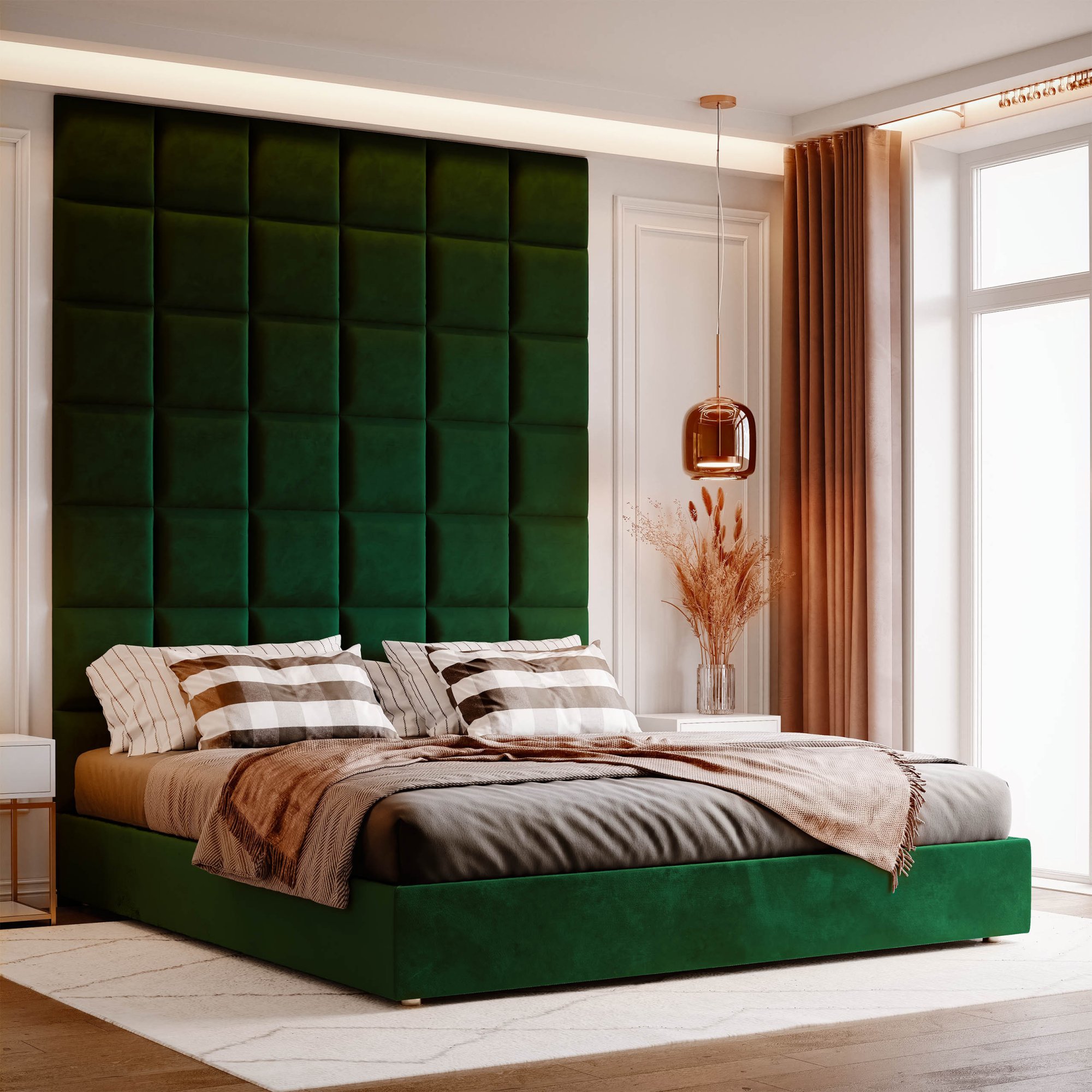 Unser Angebot umfasst Polsterpaneele in verschiedenen Formen, darunter quadratisch, rechteckig, sechseckig (hexagonal) und oval, die in vielen Größen und Farben erhältlich sind. Jedes Wandpolster besteht aus drei Schichten: einer robusten Spanplatte, einem hypoallergenen Polsterschaumstoff und einem Velours-Polsterstoff. Der Stoff ist fusselarm, abriebfest und nimmt keine Flüssigkeiten auf. All dies macht ihn pflegeleicht. Polsterpaneele lassen sich mit selbstklebenden Klettbändern ganz einfach befestigen. So gestalten Sie im Handumdrehen ein auffälliges Kopfteil im Schlafzimmer, eine gemütliche Spielecke im Kinderzimmer oder eine stilvolle Polsterwand im Wohnzimmer.