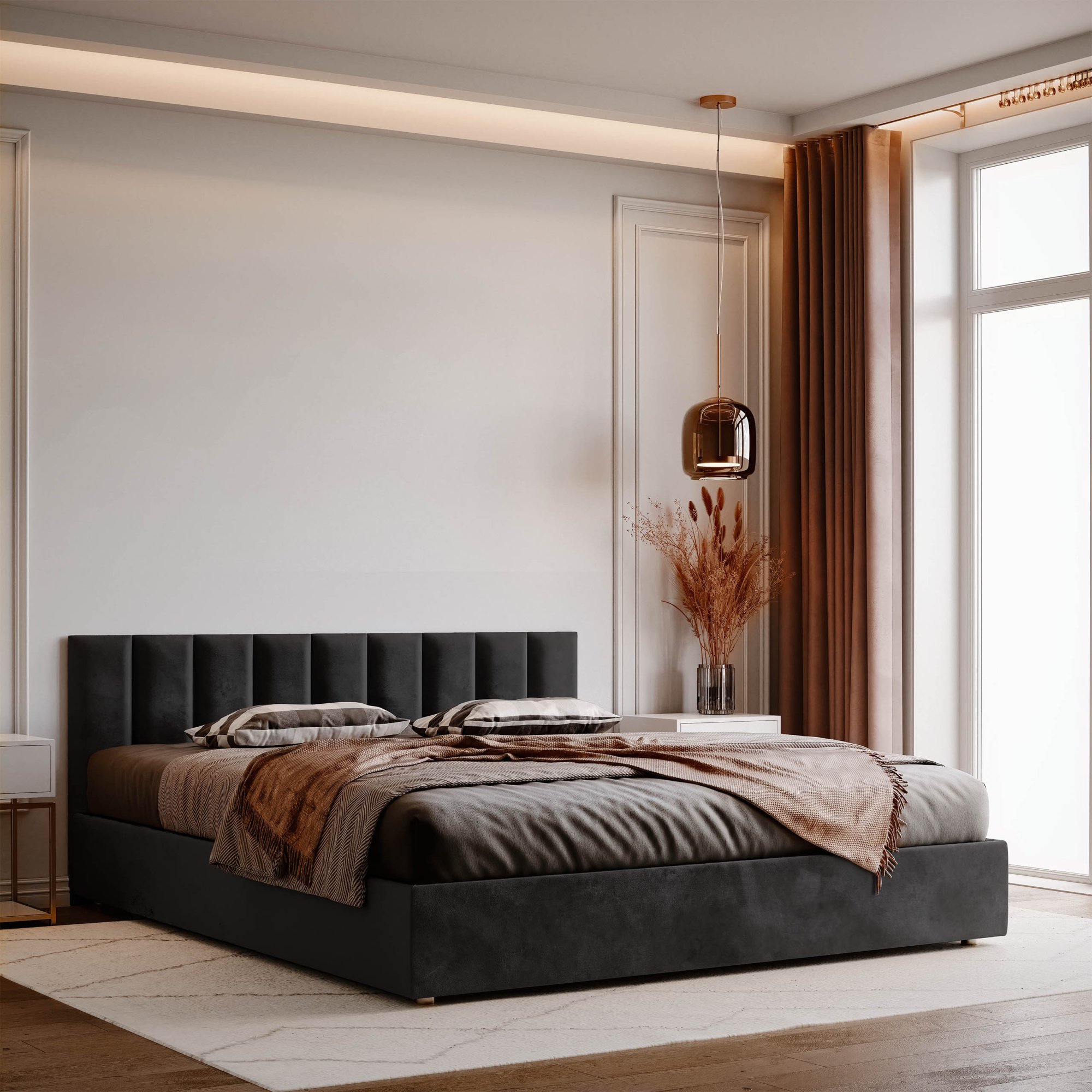 Unser Angebot umfasst Polsterpaneele in verschiedenen Formen, darunter quadratisch, rechteckig, sechseckig (hexagonal) und oval, die in vielen Größen und Farben erhältlich sind. Jedes Wandpolster besteht aus drei Schichten: einer robusten Spanplatte, einem hypoallergenen Polsterschaumstoff und einem Velours-Polsterstoff. Der Stoff ist fusselarm, abriebfest und nimmt keine Flüssigkeiten auf. All dies macht ihn pflegeleicht. Polsterpaneele lassen sich mit selbstklebenden Klettbändern ganz einfach befestigen. So gestalten Sie im Handumdrehen ein auffälliges Kopfteil im Schlafzimmer, eine gemütliche Spielecke im Kinderzimmer oder eine stilvolle Polsterwand im Wohnzimmer.