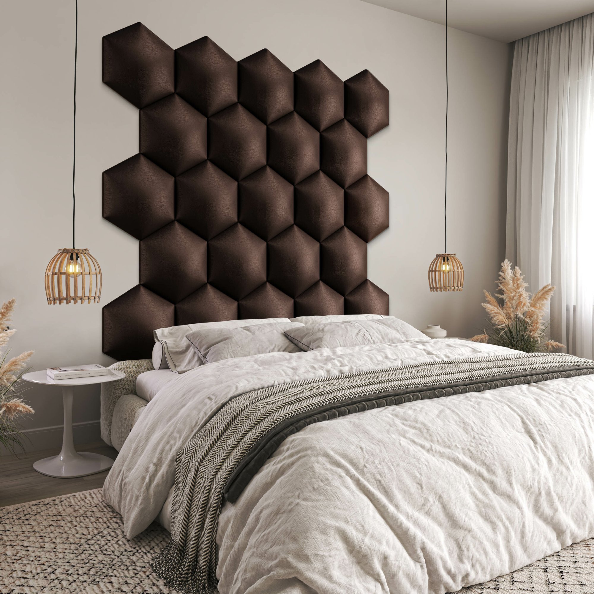 Unser Angebot umfasst Polsterpaneele in verschiedenen Formen, darunter quadratisch, rechteckig, sechseckig (hexagonal) und oval, die in vielen Größen und Farben erhältlich sind. Jedes Wandpolster besteht aus drei Schichten: einer robusten Spanplatte, einem hypoallergenen Polsterschaumstoff und einem Velours-Polsterstoff. Der Stoff ist fusselarm, abriebfest und nimmt keine Flüssigkeiten auf. All dies macht ihn pflegeleicht. Polsterpaneele lassen sich mit selbstklebenden Klettbändern ganz einfach befestigen. So gestalten Sie im Handumdrehen ein auffälliges Kopfteil im Schlafzimmer, eine gemütliche Spielecke im Kinderzimmer oder eine stilvolle Polsterwand im Wohnzimmer.