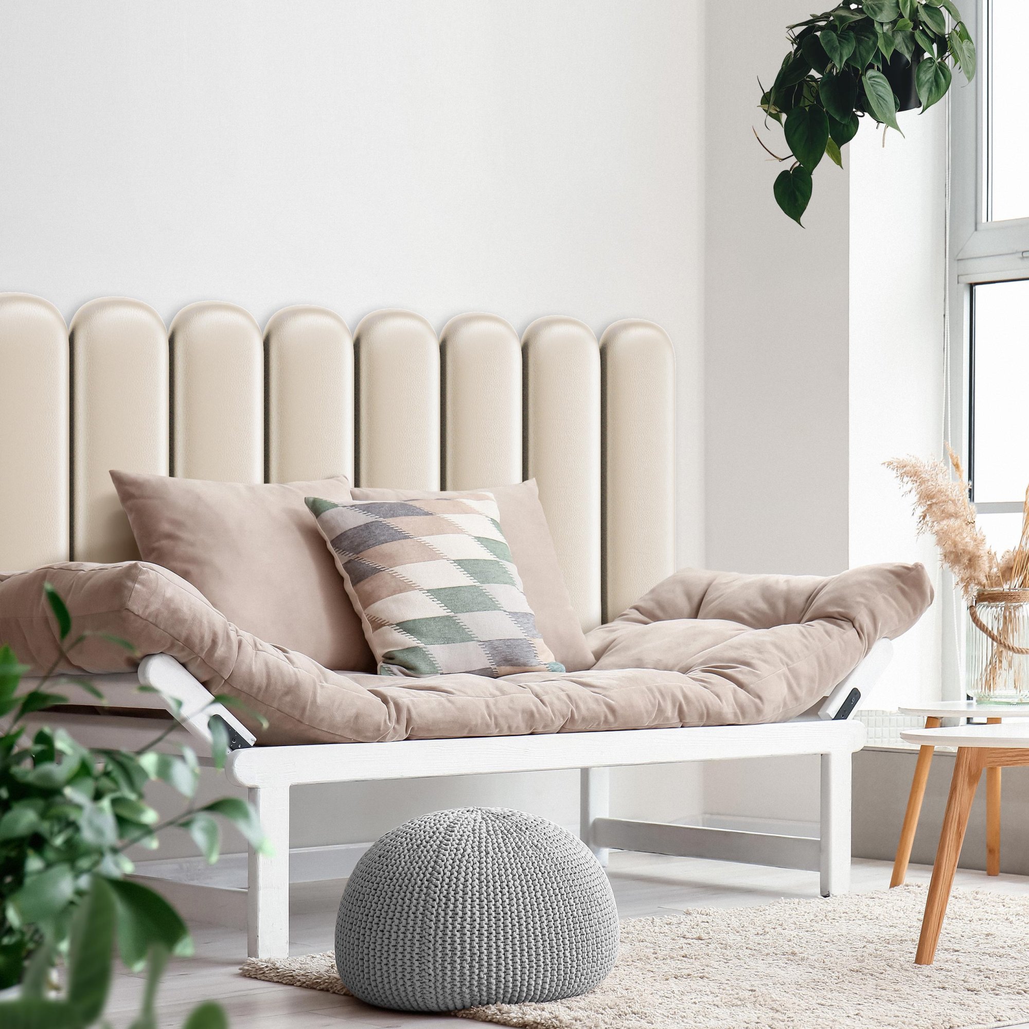 Unser Angebot umfasst Polsterpaneele in verschiedenen Formen, darunter quadratisch, rechteckig, sechseckig (hexagonal) und oval, die in vielen Größen und Farben erhältlich sind. Jedes Wandpolster besteht aus drei Schichten: einer robusten Spanplatte, einem hypoallergenen Polsterschaumstoff und einem Velours-Polsterstoff. Der Stoff ist fusselarm, abriebfest und nimmt keine Flüssigkeiten auf. All dies macht ihn pflegeleicht. Polsterpaneele lassen sich mit selbstklebenden Klettbändern ganz einfach befestigen. So gestalten Sie im Handumdrehen ein auffälliges Kopfteil im Schlafzimmer, eine gemütliche Spielecke im Kinderzimmer oder eine stilvolle Polsterwand im Wohnzimmer.