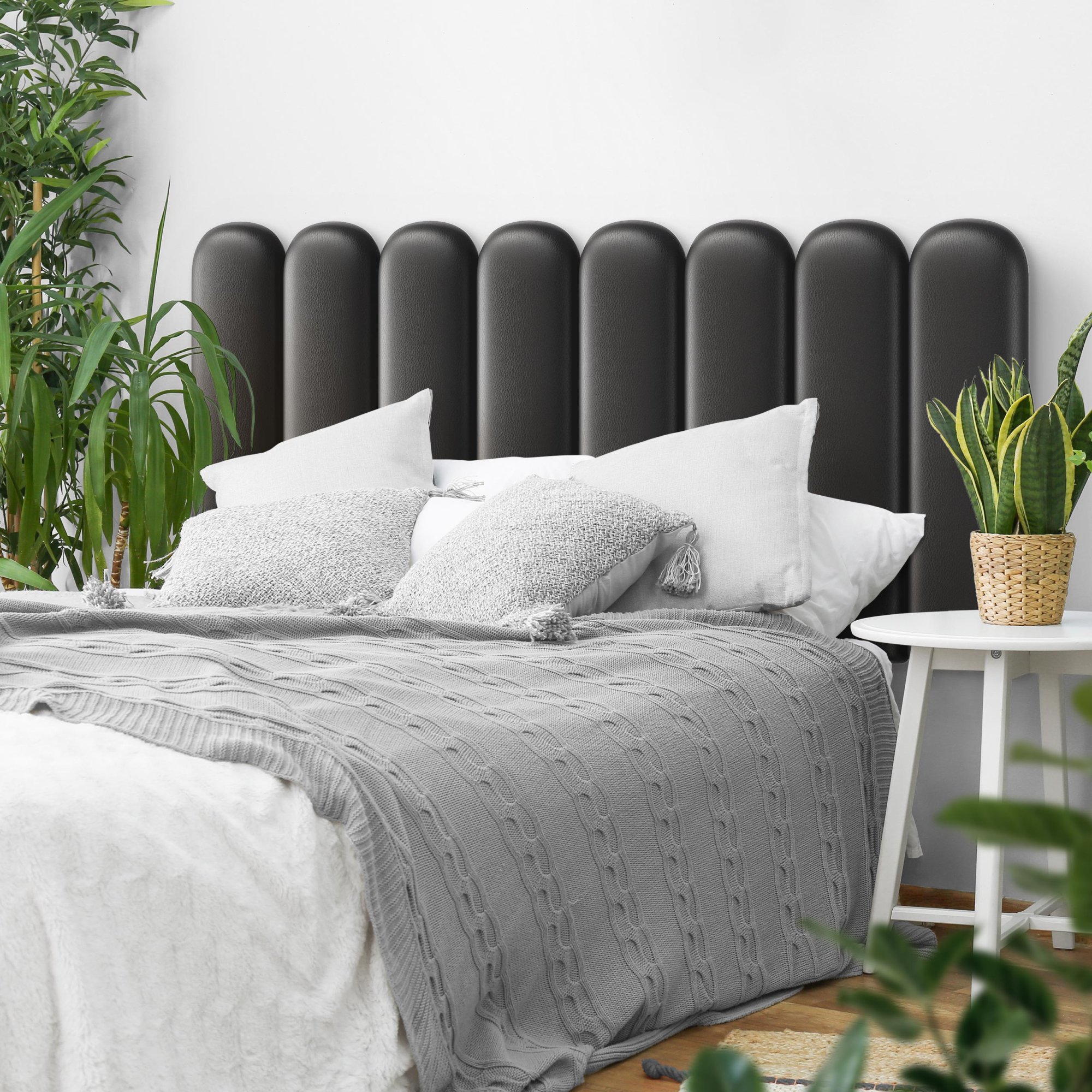 Unser Angebot umfasst Polsterpaneele in verschiedenen Formen, darunter quadratisch, rechteckig, sechseckig (hexagonal) und oval, die in vielen Größen und Farben erhältlich sind. Jedes Wandpolster besteht aus drei Schichten: einer robusten Spanplatte, einem hypoallergenen Polsterschaumstoff und einem Velours-Polsterstoff. Der Stoff ist fusselarm, abriebfest und nimmt keine Flüssigkeiten auf. All dies macht ihn pflegeleicht. Polsterpaneele lassen sich mit selbstklebenden Klettbändern ganz einfach befestigen. So gestalten Sie im Handumdrehen ein auffälliges Kopfteil im Schlafzimmer, eine gemütliche Spielecke im Kinderzimmer oder eine stilvolle Polsterwand im Wohnzimmer.