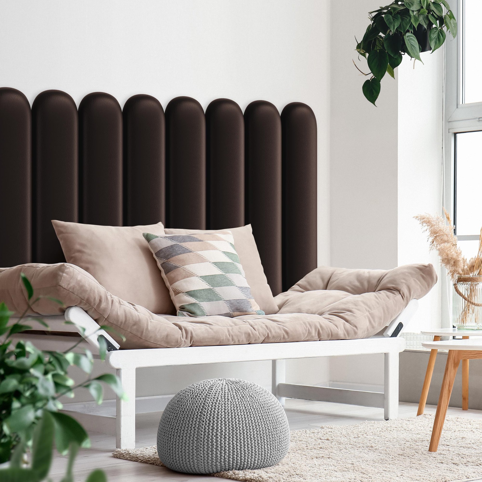 Unser Angebot umfasst Polsterpaneele in verschiedenen Formen, darunter quadratisch, rechteckig, sechseckig (hexagonal) und oval, die in vielen Größen und Farben erhältlich sind. Jedes Wandpolster besteht aus drei Schichten: einer robusten Spanplatte, einem hypoallergenen Polsterschaumstoff und einem Velours-Polsterstoff. Der Stoff ist fusselarm, abriebfest und nimmt keine Flüssigkeiten auf. All dies macht ihn pflegeleicht. Polsterpaneele lassen sich mit selbstklebenden Klettbändern ganz einfach befestigen. So gestalten Sie im Handumdrehen ein auffälliges Kopfteil im Schlafzimmer, eine gemütliche Spielecke im Kinderzimmer oder eine stilvolle Polsterwand im Wohnzimmer.